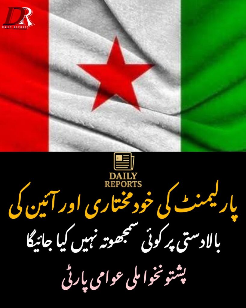 پشتونخوا ملی عوامی پارٹی نے واضح کر دیا ہے کہ پارلیمنٹ کی خود مختاری اور آئین کی بالا دستی پر کسی صورت سمجھوتہ نہیں کیا جائے گا۔ پارٹی کے رہنماؤں کا کہنا ہے کہ پاکستان میں جمہوریت کی بقا، عوام کے بنیادی حقوق کے تحفظ اور صوبائی خود مختاری کے لیے آئین کا احترام ناگزیر ہے۔